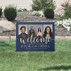 It's a double graduation party! Add a personalized touch to a joint graduation celebration honoring two graduates with a 3 photo collage welcome yard sign. The pictures and wording are simple to customize and colors are easy to change with the Zazzle design tool. The template includes class year, school name, and customizable messages that read "welcome to a graduation party" and "thank you for celebrating with us." (IMAGE PLACEMENT TIP: An easy way to position a photo exactly how you want is to crop it before uploading to the Zazzle website.) The modern navy blue and gold design features handwritten style script calligraphy, elegant classic typography, and three photos of your choice, such as senior pictures or images from the commencement ceremony. Please note that gold is printed color, not metallic foil. This outdoor welcome sign is a stylish way to announce a special day celebration for any 2 grads, such as siblings, best friends, cousins, twins, brother and sister, etc. Congratulations to both of the graduates!