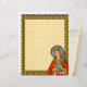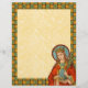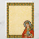 Unpersonalized sheet of paper printed on only 1 side. + Note well: Because its use results in a very strong golden cast, the speckled paper is not recommended for this design. + Image Credit (JP 01): Antique image of St. Barbara Nicomedia from an 1877 chromolithographic devotional print originally published by J. Petyt, Bruges, Belgium, from the designer’s private collection of religious ephemera. + Feast: December 4 + All text is in very dark brown (#372D1A).