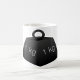 Some things we measure in how much they weight and also we like to lift weights to build up muscles. Now this design is of a 1kg weight. Although that is not heavy the design looks heavy and is of a black weight with 1kg written on it. This 1kg weight looks great on this mug. Perfect for yourself or as a gift