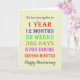 1st wedding anniversary card counting down the years, days, months, hours, and minutes that you have been married. Funny, but with a romantic verse inside. A card to give pause for thought! Leap years have been taken into account!
