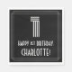 This Roaring Twenties inspired birthday-themed paper napkin design features a large Art Deco look inspired number "1", the message "HAPPY 1st BIRTHDAY,", an editable name, and a border pattern consisting of lines. Fun, customizable paper napkins like this might be used at a birthday party being held to celebrate somebody’s 1st birthday. [~Z0000395]