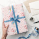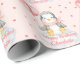 A cute 1st birthday gift wrap with a watercolor cartoon baby girl penguin sitting on a cloud holding an age balloon and a pink polka dot/ confetti background A sweet design for a little girl who will be one years old. Add the child,s name and age to customize it for that special little girl.