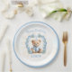 Birthday Paper Plates with a cute teddy bear and balloon arch in soft light blue and beige. Cute design for first or any Birthday of a little boy. Easily personalize all the text. Please visit the store for the full line of products that are available :) - Kate Eden Art