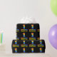 This cheerful, fun, and colorful birthday wrapping paper design features a large number "1" and the message "HAPPY BIRTHDAY,", both colored with a rainbow spectrum gradient inspired pattern, along with a bold yellow personalized recipient name. The background is colored black. Fun wrapping paper like this might be used when giving a gift or present in honor of somebody’s first birthday. [~Z0000475]