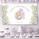 1st Birthday Cute Purple Teddy Bear Greenery Banner