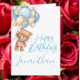 1st birthday cute teddy balloon boy card