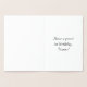 The front of this elaborate and lavish birthday foil greeting card design features the message “Happy 1st Birthday,” in opulent script style text. The inside has a personalized birthday greeting message, or could perhaps be cleared and left blank if a message is to be written by hand instead. A formal, customized birthday greeting card like this might be used to celebrate somebody’s first birthday. [~Z0000555]