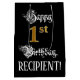 This opulent and luxurious birthday giftbag design features the message “Happy 1st Birthday,”, along with a personalized recipient name. Part of the message is in an ornate script-style text, the large number “1st” features a faux/imitation gold-inspired look pattern, and the background is colored black. An elegant birthday themed gift bag like this might be a respectable way to wrap a gift or present being given to celebrate somebody’s first birthday. [~Z0000560]