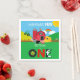 1st Birthday Farm Animals Barnyard Fun Kids Party Paper Napkins. Personalize with name for first birthday. Farm animals, barn, pig, cow, sheep, rainbow, tractor, farm-themed party supplies. www.SamAnnDesigns.com