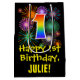 This fun, exciting, and colorful birthday themed giftbag design features a large number "1" with a rainbow spectrum gradient inspired pattern, along with the message "Happy 1st Birthday,", and a customizable recipient name. It also features a colorful background pattern inspired by bursting celebratory fireworks. A fun gift-bag like this might be used when wrapping presents being given to somebody in celebration of their 1st birthday. [~Z0000509]