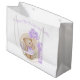 Cute Personalized 1st Birthday Gift Bag For a Girl with cute teddy bear and balloons in purple. Easily personalize the name.