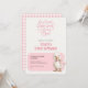 This sweet first birthday invitation features a soft pink gingham background with a charming watercolor duck and bow design. Perfect for celebrating a little girl’s first birthday, this invitation feels playful, gentle, and timeless.