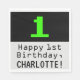 This geeky and fun birthday themed paper napkin design features a large green classic computer game style number "1" on a black colored background. It also features the birthday greeting message "Happy 1st Birthday,", and a personalized name. Fun, customized birthday themed paper napkins like this might be used at somebody’s first birthday celebration. [~Z0000404]