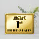 The front of this stylish and 1920s-1930s era style inspired first birthday party/celebration foil invitation card design features a custom name, an art deco look inspired number “1st”, the message “BIRTHDAY PARTY”, and a border pattern consisting of lines. The back features personalized details about the event, such as the date, time, location, and any other important information. Elegant, luxurious, customizable invitations like these might be used to invite attendees/guests to a birthday gathering/party being held to celebrate somebody’s 1st birthday. [~Z0000606]