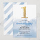 1ST BIRTHDAY PARTY INVITE modern gold glitter blue