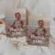 A modern Birthday thank you favor card, featuring your own photo and the words 'thank you.' over the top. You can upload your own photo and also change the text if you prefer. This design has been left blank on the back for you to write on.