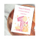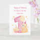 This 1st birthday card is suitable for a daughter, granddaughter or friend. The design includes an infant teddy bear with party hat, balloon and cake.