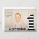 Modern large black and white stripes pattern decorate the giant number 1 on the front of this photo invite. Each invite comes with a free matching size envelope included in the affordable cost.