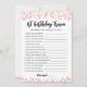 1st Birthday Trivia editable game Card