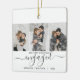 1st Christmas Engaged 3 Photo Collage Gray Script Ceramic Ornament