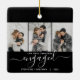 1st Christmas Engaged 3 Photo White Script Black Ceramic Ornament