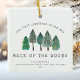 Celebrate your first Christmas in your new home with this cute rustic keepsake ornament, featuring a row of watercolor pine trees and the words "Our First Christmas in Our New Neck of the Woods" in hand-printing typography. Add your name, new address and the year below in sans serif font.