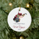1st Christmas In West Virginia Personalized Floral Ceramic Ornament. Personalize with your custom information on both front and back.