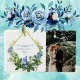 Celebrate the newly married couple on their first Christmas together with this greenery and crystals watercolor botanicals attached to a gold geometric diamond shaped frame. Simple blue text templates created for you to fill in on front and a photo on the back.