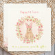 Cute bunny in spring wreath, peachy pink flowers Easter Card for baby girl's, granddaughter, first Easter. Easily personalize this Easter card with your own text. Matching items are available in my store - Kate Eden Art.