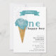1st First Birthday One Happy Boy Blue Ice Cream Invitation