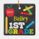 1st Grade Keepsake Chalkboard Colorful Kids Photo Ceramic Ornament