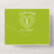 Celebrating 1 year of love wedding anniversary party event with photo and detachable RSVP or QR code reply option invitations. Invites can be sealed so no envelopes are required. A green peridot line art gemstone in a heart shape printed graphics wedding anniversary invitations, personalize with your own wedding anniversary party details, a photo of the happy couple on the inside flap. Make it easy for you and your guests to send back responses as no envelope is required with this one, which ever option they choose, traditional or QR code scan, all you have to do is simply handwrite on your sealed invitations. The first wedding anniversary is associated with the gemstone peridot and the heart symbolizes love. Other matching items are available. Graphic line art and design by Sarah Trett for www.mylittleeden.com and www.mylittleedenweddings.com