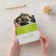 We absolutely loved how these wedding invitations turned out! We went with the standard paper stock, and it is plenty thick. One thing we probably would have changed is not doing the big white block on the front for the recipient address. Our invitations are a dark green. When we went to Staples to look at the options for labels, we saw some cute kraft stock colored ones that would have looked really cute on the dark green rather than using matte clear labels within the white block if that makes sense. They are still adorable though. I just fancied up my matte labels with a little leafy design and pretty font for the names so I feel like it helped it look more cohesive. Also, if you’re worried that they look pricey, make sure to put your quantity in because the price goes down significantly. We found this to be a super affordable, efficient and unique option that checked all of our boxes. When folded, they are the size of a little Google home screen see pictures. Perfect! Colors look exactly as we expected and the printing quality is clear and consistent.
