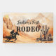 A vibrant banner capturing the essence of the Wild West, tailored perfectly for a child's first birthday celebration. Against a backdrop of rugged desert mountains, the scene is set for an adventure-filled rodeo. This banner serves as a captivating tribute to the adventurous spirit of childhood and the timeless allure of the frontier. A fitting centerpiece for a celebration filled with laughter, joy, and the promise of many more adventures to come.