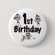 1st Sock Monkey Baseball Birthday Pinback Button