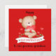 Cute teddy bear boy with the red hearts on red Valentines Card for a baby boy's first Valentine's day. Easily personalize this Valentines card with your own text. Matching items are available in my store - Kate Eden Art.