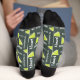 1st Wedding Anniversary green peridot gem custom socks. Graphic peridot green gemstone 1st wedding anniversary design. Personalize with the names of your own couple. Other matching items are available. Art and design by Sarah Trett for www.mylittleeden.com and www.mylittleedenweddings.com