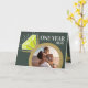 1st wedding anniversary now and then photo template card in gray, with peridot green and white sparkle. Featuring a graphic eternity ring with two photos of you and your partner now and then. Personalized with your own photos of your wedding day and a current photo on the inside then add your own celebration message. Other matching items are available. Original ring graphic art and design by Sarah Trett for www.mylittleeden.com on Zazzle.