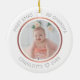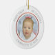 This personalized Christmas ornament features a modern faux rose gold design. Personalize the name, year and photos. It is double sided with a different photo on each side. This template works best with landscape format photos with the baby in the center.