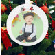 Celebrate the season with this charming photo glass ornament, thoughtfully designed in a whimsical gingerbread‑and‑candy cane motif. Crafted from clear glass, it features a vibrant gingerbread man holding a red‑and‑white candy cane, framed by holly‑leaf accents and festive ribbon. The glass front is personalized with a favorite photograph — making this ornament both decorative and sentimental.