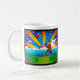 If you love Peter Max, you will LOVE this mug. It's large enough to have a serious cup of coffee and the design is happy and colorful. Highly recommend this item. Colors were bright and cheerful, the customized design was exactly as I had hoped for. Very pleased with this product.