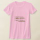 My overall review is that the T-shirt is nice, it fits true to size however the font is significantly smaller than advertised and you can't read it. The printing is unreadable and there is a strain to read it. It does not look like the advertised product. Maybe the shirt color is darker or a larger more visible font should have been used. Photos with and without flash and font is barely legible.