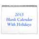 In large 2015 Blank Calendar With Holidays with blue wire you can find blue customizable text on front page and holidays and events in U.S. and Canada.