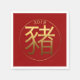 Golden Pig Symbol with an embossed digital effect on dark red background + 2019 on paper napkin. You can easily change the Year (font, color, size and position) by clicking the customize button. Matching paper plate and more... Perfect for Chinese New Year of The Pig 2019 or Birthday (people born in Pig year). ------ "The Pig (豬) is the twelfth and the last sign of the Earthly Branches (亥). In the continuous Sexagenary cycle, every twelfth year corresponds to Hai, and is commonly called "the Year of the Pig" (豬年). There are five types of Pigs, named after the Chinese elements. In order, they are: Metal, Water, Wood, Fire, and Earth.