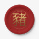 Golden Pig Symbol with an embossed digital effect on dark red background + 2019 on paper plate. You can easily change the Year (font, color, size and position) by clicking the customize button. Matching paper napkin and more... Perfect for Chinese New Year of The Pig 2019 or Birthday (people born in Pig year). ------ "The Pig (豬) is the twelfth and the last sign of the Earthly Branches (亥). In the continuous Sexagenary cycle, every twelfth year corresponds to Hai, and is commonly called "the Year of the Pig" (豬年). There are five types of Pigs, named after the Chinese elements. In order, they are: Metal, Water, Wood, Fire, and Earth.