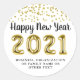 Modern gold balloon numbers 2021 and the greeting HAPPY NEW YEAR personalized with your company, organization, family name or other text. Use as envelope seals or party favor stickers. Contact the designer via Zazzle Chat or makeitaboutyoustore@gmail.com if you'd like this design modified, on another product or would like coordinating items.