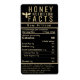 2021 Honey Nutrition Facts Label with servings per container. Choose from the pre-calculated list. Black background with gold bee and gold text.