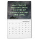A beautiful, celestial 2021 wall calendar featuring "Metta" or "lovingkindness" phrases. Metta meditation from the Buddhist tradition can be translated as “lovingkindness or good-will” practice. This type of meditation practice is simply reciting, either silently or out loud, phrases of loving good wishes towards the self or others. The phrases are simple and meant to cultivate feelings joy, good will and love in the mind and heart.