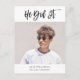 2022 He Did It Modern Calligraphy Photo Graduation Announcement Postcard
