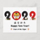 Cute tiger is looking out from the letter O, and other numbers are decorated with stylized mum. The address is the back is personalized. This is digital illustration.
